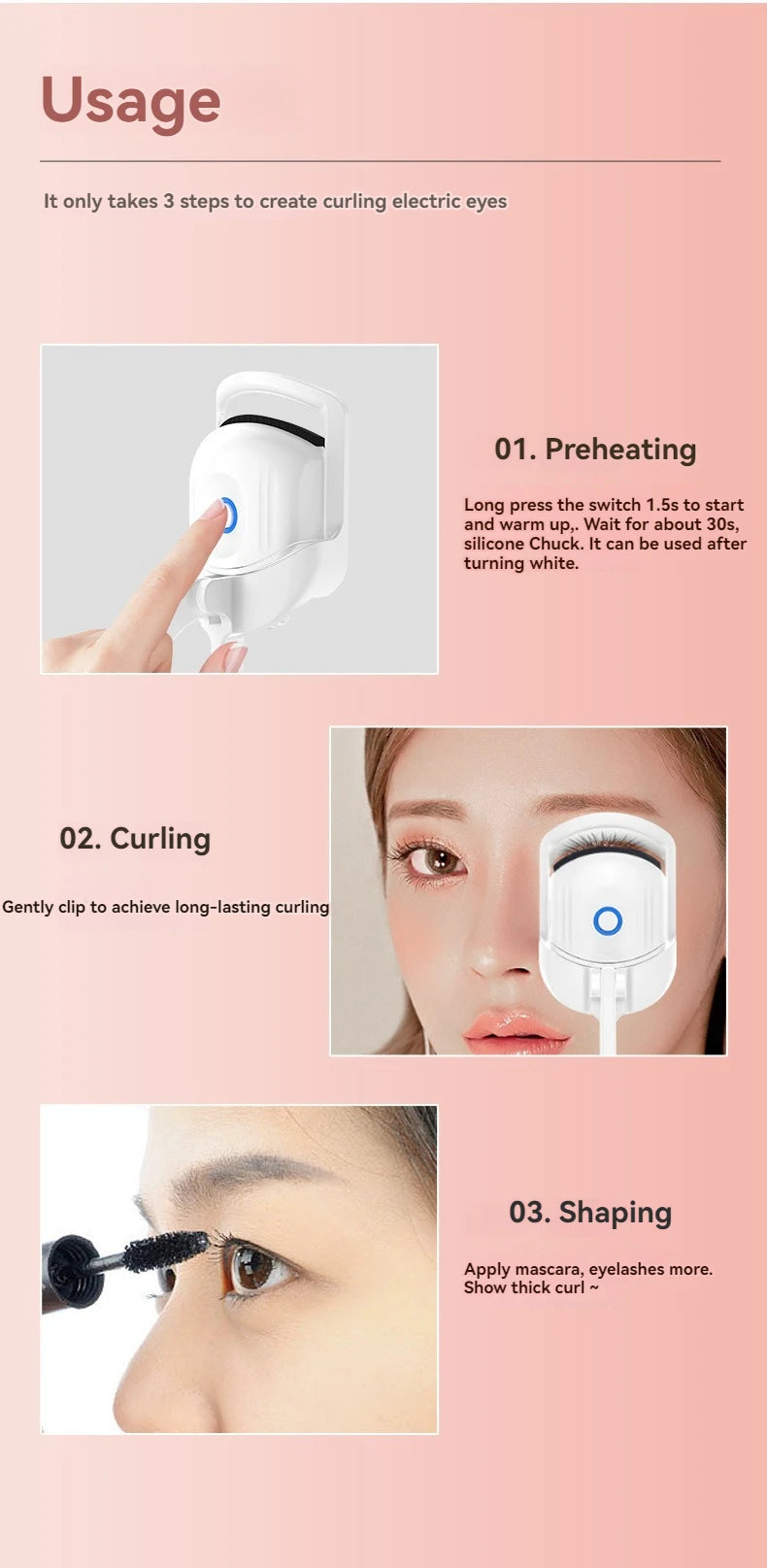 (1 Piece) ABS Electric Eyelash Curler, Long-Lasting Curl Electric Eye Lash Perm Eyelashes Clip EyelashCurler Device Makeup Tools| GlowPeak